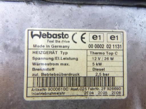 WEBASTO ПАРКОВОЧНЫЙ ОТОПЛИТЕЛЬ THERMO TOP C 5KW DIESEL
