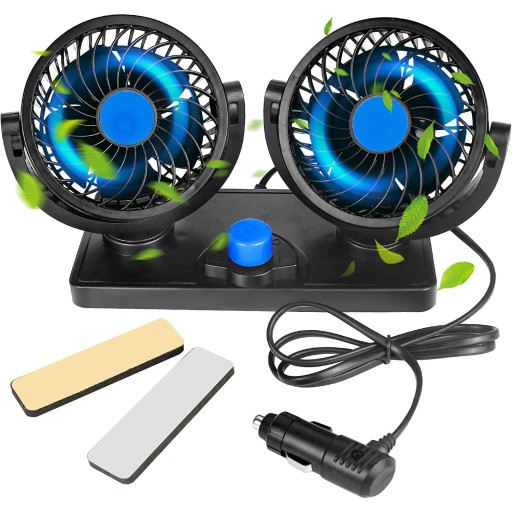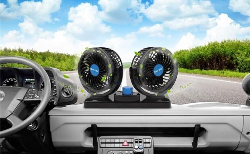 🧊 【Obrót o 360 stopni】: Wentylator samochodowy 12 V jest wyposażony w dwie obrotowe głowice o 360 stopni, które w ciągu kilku sekund mogą wydmuchać gorące powietrze z zaparkowanego samochodu w dowolnym kierunku.