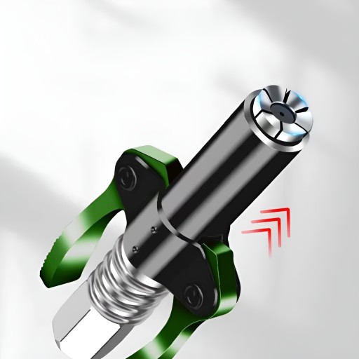 Końcówka wyposażona jest w podwójny uchwyt, zaprojektowany z myślą o obsłudze jedną ręką. Antypoślizgowa konstrukcja zapewnia pewny chwyt, a płynny mechanizm chowania sprawia, że proces smarowania jest bardziej wydajny i komfortowy.
