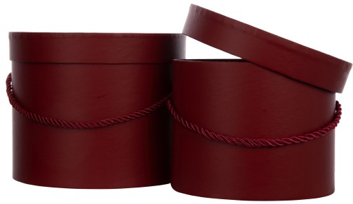 Pudełko ozdobne w kolorze burgund. Flower box sprawdzi się do ułożenia kompozycji florystycznych, opakowania prezentu, do przechowywania drobiazgów. Opakowanie zawiera dwie sztuki w różnych rozmiarach.