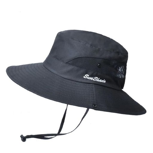 ochrona przed promieniowaniem UV, siatkowy daszek idealny do podróży, wędkarstwa, na plażę, ogrodnictwo, 56-58 cm (Fajny czarny)