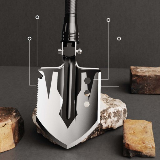 Produkt jest wykonany ze stali nierdzewnej oraz stopu aluminium najwyższej jakości, przez co jest bardzo trwały i nie zniszczy się po pierwszym biwakowaniu. Budowa została zaprojektowana w taki sposób, aby pewnie leżała w dłoniach bez znaczenia, której funkcji chcemy akurat użyć. Główka łopaty można składać pod różnymi kątami do różnych zadań