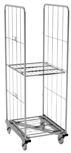 - wózek w zestawie posiada platformę z 4 kołami, dwie ściany boczne oraz 1 przestawną półkę
