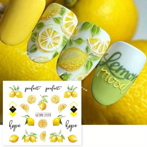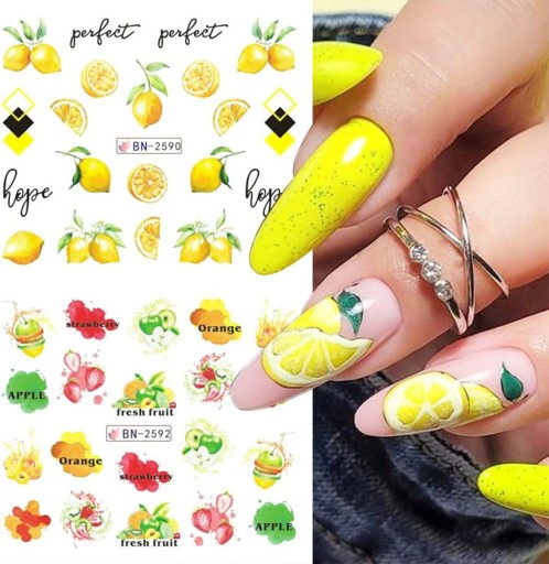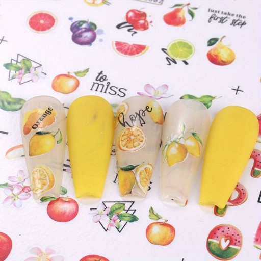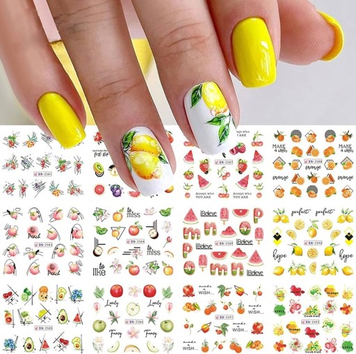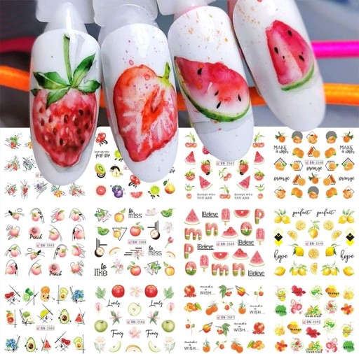 ВОДНЫЕ НАКЛЕЙКИ для украшения ногтей, лист из 12 рисунков, летние фруктовые украшения