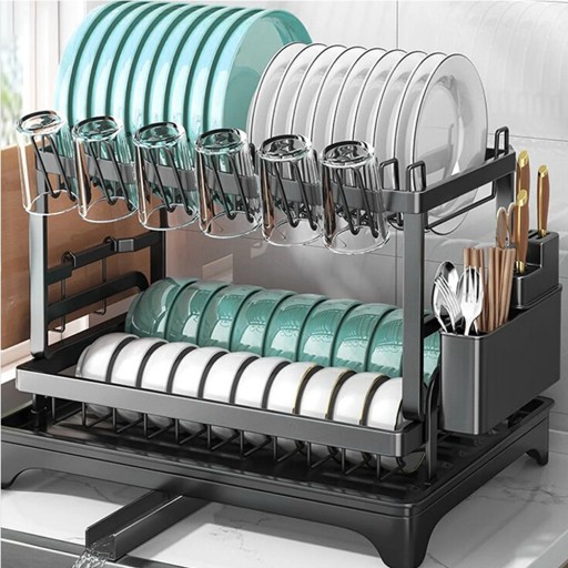 ДРЕНАЖ ДЛЯ СУШКИ ПОСУДЫ С ДВУХУРОВНЕВЫМ СЛИВОМ ДЛЯ ТАРЕЛОК И СТОЛОВЫХ ПРИБОРОВ