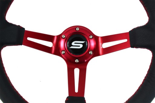 Спортивный руль SLIDE Rally 350 мм, вылет: 90 мм, красная кожа TUNING SPORT