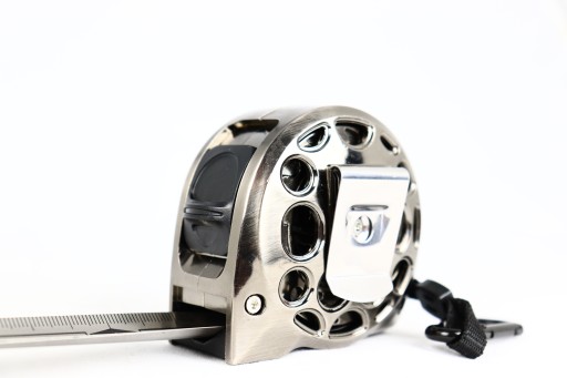 Posiada również blaszkę sprężynującą do zawieszenia miarki np. na kieszeni.