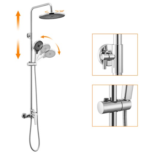 - Zawartość zestawu: akcesoria do deszczownicy, bateria prysznicowa, deszczownica, słuchawka prysznicowa, uchwyt prysznicowy, wąż prysznicowy