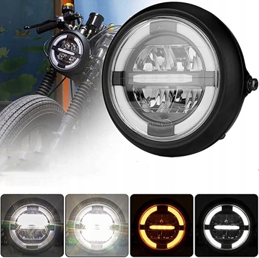 12V uniwersalna lampa czołowa motocykla 7,5 cala motocykl remont okrągły czarny zestaw reflektorów