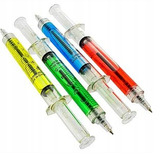 Świetny prezent i super gadżet, dzięki któremu nabierzesz nauczycieli i kolegów w szkole, czy koleżanki i kumpli z pracy, albo pasażerów w autobusie. Długopis do złudzenia przypomina strzykawkę wypełnioną krwią. Więc gdy już wszyscy ochłoną, po tym jak wyciągniesz strzykawkę z kieszeni czy torby i przyłożysz ja mimochodem do ręki, będziesz mógł im napisać: wyluzujcie, wkręciłem was.