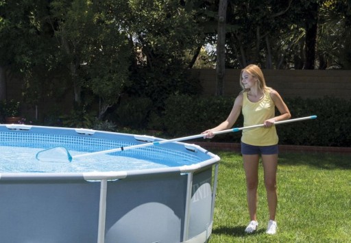 ⭐ Zestaw zawiera również teleskopowy kij o imponującej długości 239 cm, który pozwala na swobodne poruszanie się i czyszczenie basenu. Możesz podłączyć nakładkę z siatką lub specjalną końcówkę do odkurzania, aby skutecznie usuwać zanieczyszczenia zarówno z dna, jak i powierzchni basenu.