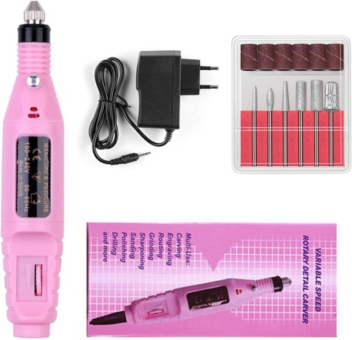 Ten produkt jest połączony z różnymi głowicami szlifierskimi, aby ułatwić przycinanie pięknego manicure.