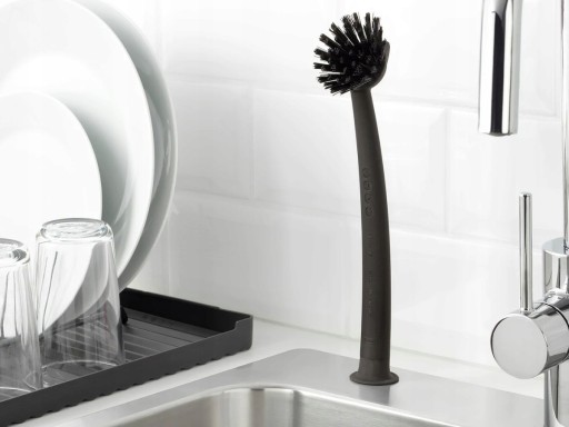 - Dzięki przyssawce przyczepia się do zlewów, płytek ceramicznych itp.