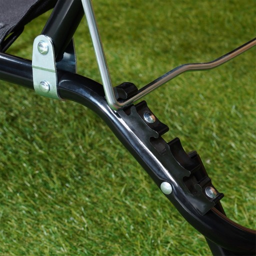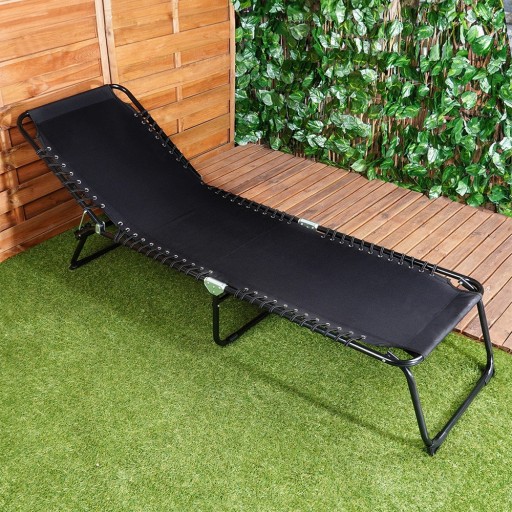 - Metalowa konstrukcja w kolorze czarnym - Leżak jest wykonany z wytrzymałych i solidnych materiałów. Poszycie wykonane z wytrzymałej tkaniny poliestrowej w kolorze czarnym. Leżak jest wytrzymały.