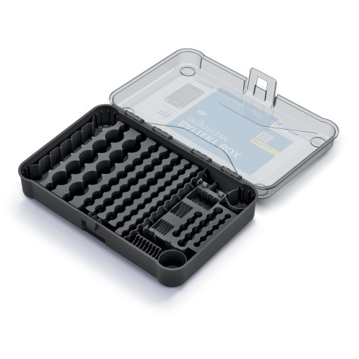 Korpus wykonany z wytrzymałej mieszanki polimerów zapewnia długotrwałe użytkowanie, a kompaktowe wymiary pojemnika ułatwiają transport i przechowywanie. 115 miejsc na baterie pozwala na przechowywanie takich ogniw jak: