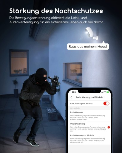 Bateryjna kamera bezpieczeństwa z inteligentnymi algorytmami AI znacznie poprawia rozpoznawanie ludzi, co ogranicza fałszywe alarmy. Po wykryciu ruchu kamera bezpieczeństwa wyśle powiadomienia w czasie rzeczywistym do Ciebie i udostępnionych użytkownikom, aby poinformować Cię, kto tam jest. Możesz także wybrać tryb syreny lub alarmu świetlnego, aby odstraszyć intruzów. Ustaw plan alarmowy, monitoruj określone obszary, aby chronić bezpieczeństwo w domu, niezależnie od tego, czy jesteś w domu, czy wychodzisz.