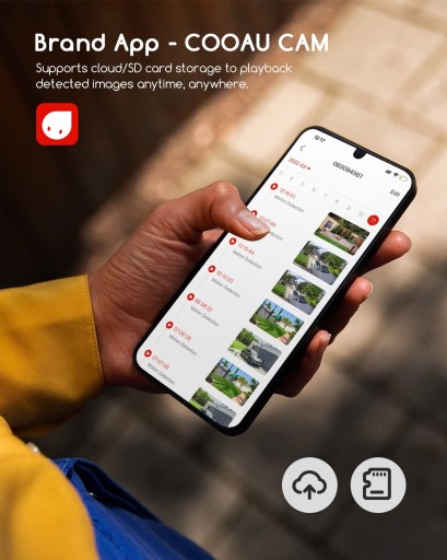Szyfrowanie danych AES-256 klasy wojskowej zapewnia prywatność nagrań podczas transmisji i przechowywania. Bezprzewodowa kamera Wi-Fi obsługuje karty micro SD o pojemności do 128 GB (brak w zestawie), a jej zawartość jest szyfrowana i chroniona, co sprawia, że nie można jej odczytać przy użyciu zasobów zewnętrznych. W porównaniu z innymi kamerami, które mają tylko jedną wodoodporną warstwę, zewnętrzna kamera bezpieczeństwa COOAU z wodoodpornością IP65 może dobrze pracować w temperaturach od -13°F do 140°F.
