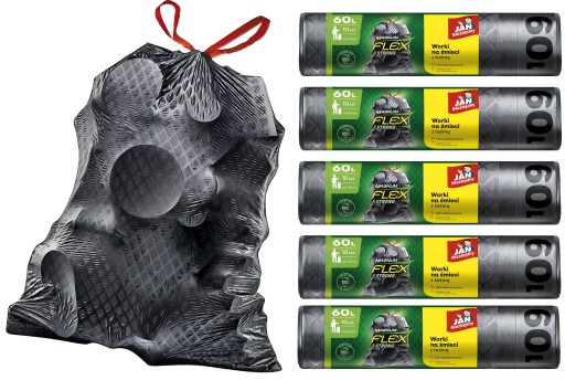 ⭐Jan Niezbędny Worki LD Magnum Flex Taśma 60L 10szt. - 5 op.⭐