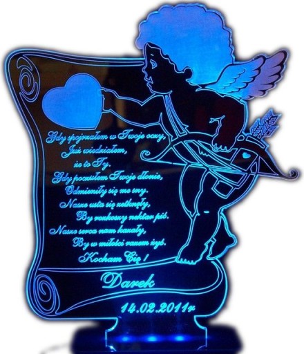 WALENTYNKI PODŚWIETLANA STATUETKA Z ZDJĘCIEM AMOR Wysokość produktu 20 cm