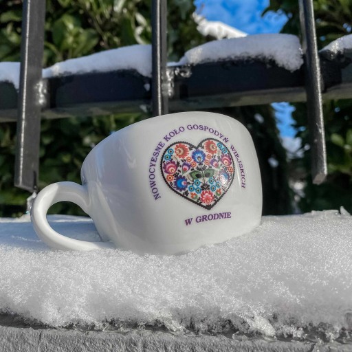 W cenie produktu wliczony jest projekt i taki sam nadruk umieszczony po jednej stronie kubka.
