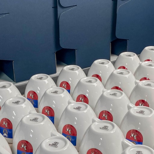 Komplet 100 szt. filiżanek z nadrukiem oraz projektem graficznym w cenie.
