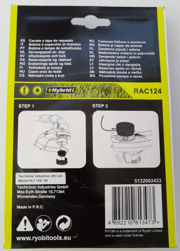 Ryobi szpula i nasadka do akumulatorowych podkaszarek do trawy 18V ONE+™ z żyłką 1,6 mm