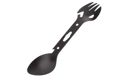 Można używać go jako łyżkę, widelec, nóż, otwieracz do kapsli i puszek oraz klucz oczkowy 5-8mm.