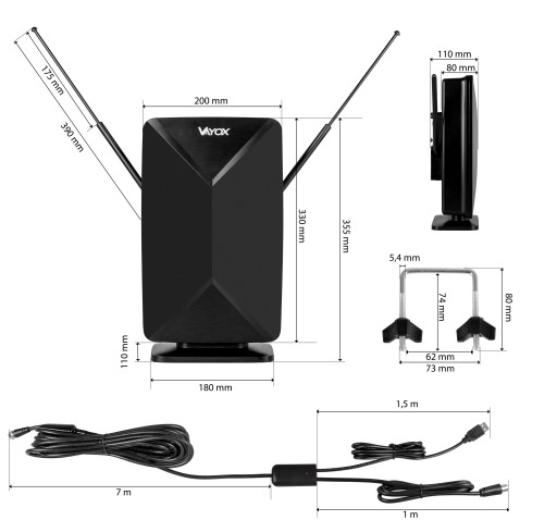 ⭐W zestawie: Antena va0248, Zasilacz 5V, Przewód antenowy 8M,Uchwyt ścienny, Uchwyt wewnętrzny