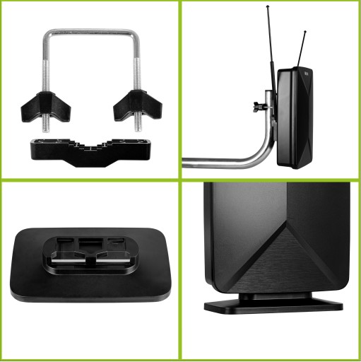 - Specjalna podstawka umożliwia postawienie anteny w dowolnym miejscu