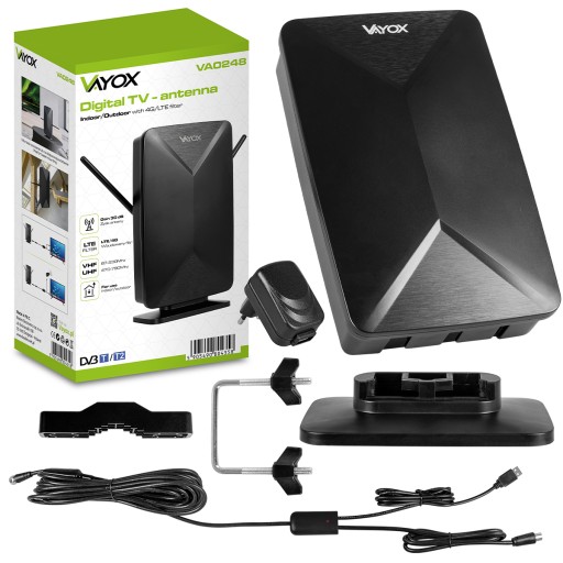 ANTENA AKTYWNA WEWNĘTRZNA ZEWNĘTRZNA DVB-T2 TV NAZIEMNEJ DOOKÓLNA 4K VAYOX