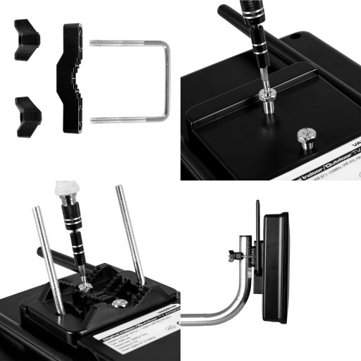 - Obejma metalowa do montażu zewnętrznego na uchwycie, barierce itp.
