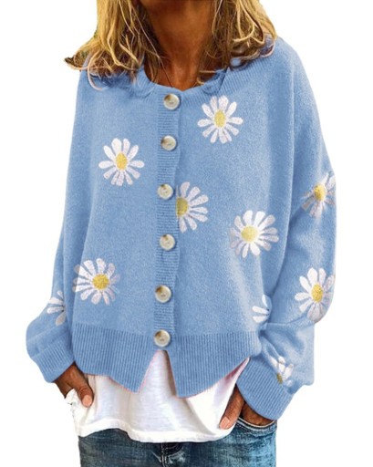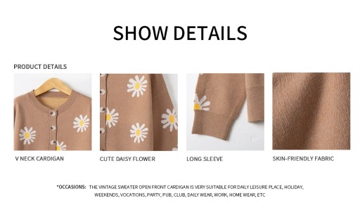 CECHY: Przyciągający wzrok damski sweter z dzianiny w kwiatowe wzory, dekolt w kształcie litery V, długi rękaw, otwarty, zapinany z przodu, swobodny, luźny kardigan, długi rękaw, zapinany na guziki, uroczy sweter z dzianiny dla nastolatek.