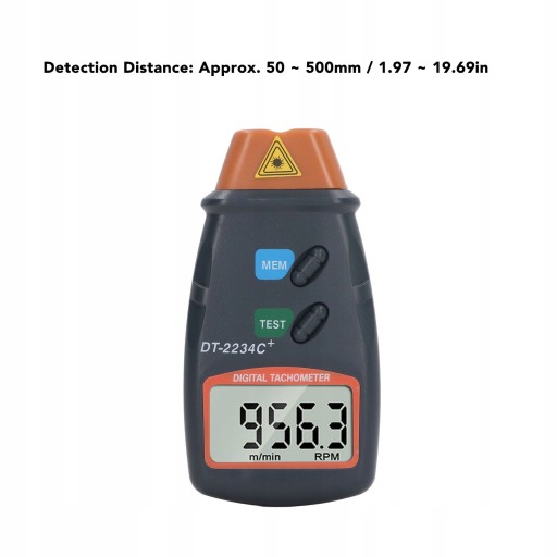 - Rozdzielczość: 0,1 obr./min dla 2,5 ~ 999,9 obr./min. 1 obr./min przez ponad 1000 obr./min.