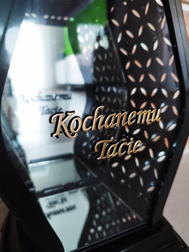 Na przedniej szklanej ściance NAPIS KOCHANEMU TACIE.