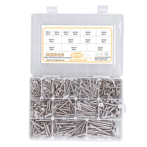 Набор винтов с потайной головкой 304, 510 шт.