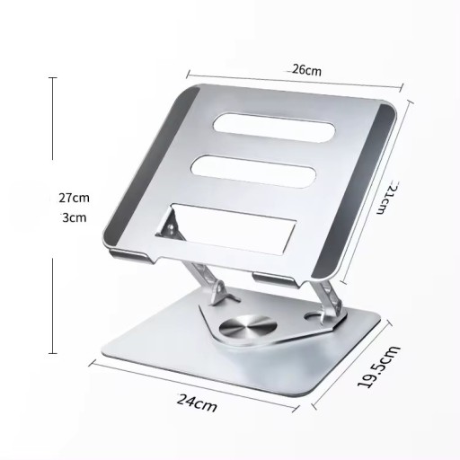 Stojak wykonany jest z wytrzymałego aluminium, co zapewnia nie tylko estetyczny wygląd, ale także trwałość i stabilność. Funkcja 360-stopniowej rotacji pozwala na swobodne obracanie laptopa, co jest niezwykle praktyczne podczas prezentacji czy spotkań biznesowych.