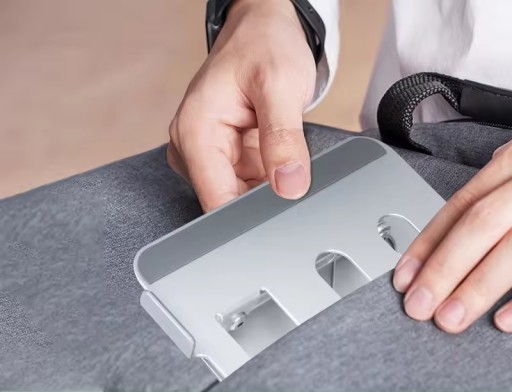 Antypoślizgowe silikonowe nakładki zabezpieczają laptop przed przesuwaniem się oraz zarysowaniami, zapewniając stabilność i bezpieczeństwo podczas użytkowania.