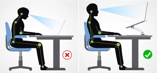 Podstawka spełnia również wszystkie, zalecane wytyczne dotyczące ergonomii, które sugerują umieszczanie ekranu na wysokości oczu oraz utrzymywanie pleców, ramion i nadgarstków w linii prostej.