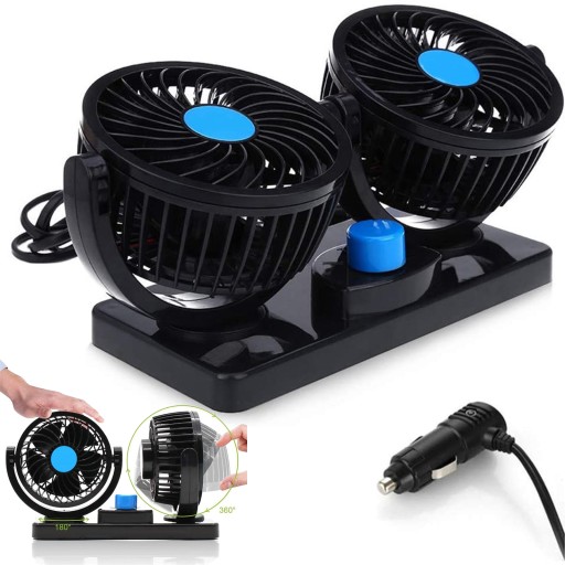 Podwójny wiatrak, wentylator samochodowy zasilany za 12v pod zapalniczkę.
