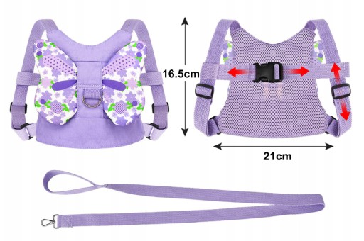 Ładny wzór: uprząż z pięknymi anielskimi skrzydłami, które twoje dziewczyny muszą być bardzo zadowolone z noszenia. Paski naramienne i pasek z klamrą można dowolnie regulować, aby pasowały do większości dzieci.