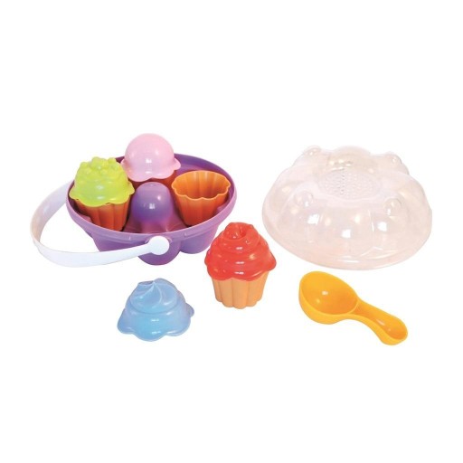 Ten niewielki zestaw do piasku kryje w sobie liczne zalety! Składa się z czterech foremek-babeczek z wieczkami, łyżeczki oraz zamykanego koszyczka z rączką który bez trudu mieści wszystkie elementy, a dodatkowo jest bardzo wygodny do przenoszenia. Koszyczek może również pełnić rolę kolejnej foremki do robienia dużych babek z piasku. Foremki babeczki w koszyku Adriatic mogą służyć do zabawy w ogrodzie, w piaskownicy, w basenie czy też na plaży. Dziecko może bawić się w małego cukiernika, tworząc piaskowe babeczki o rozmaitych kształtach.