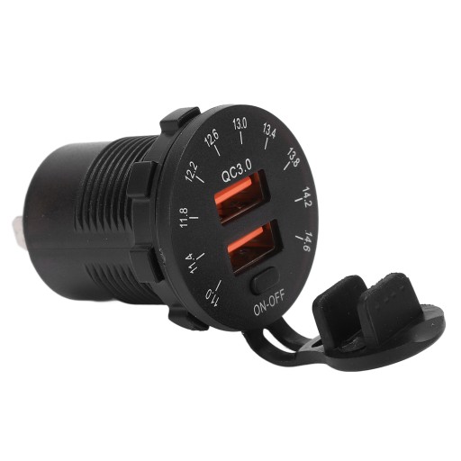 24V, motocykli, statków, jachtów, ma szeroki zakres zastosowań. 2. Wodoodporna konstrukcja: wodoodporna konstrukcja, skutecznie zapobiega uszkodzeniu woltomierza przez wodę deszczową. Inteligentny układ kontrolny, zapobieganie pożarom i wysoka temperatura. 3. Szybkie ładowanie: szybkie ładowanie QC3.0 zapewnia większą prędkość ładowania kompatybilnych urządzeń niż zwykła ładowarka. 4. Podwójne porty USB: ładowarka samochodowa może ładować dwa urządzenia jednocześnie, podwójne wyjście, wygodne w użyciu. 5. Silna kompatybilność: Kompatybilny z różnymi urządzeniami cyfrowymi, takimi jak telefon komórkowy, tablet, MP3, konsola do gier, GPS, aparat. 6. Matowa tekstura: użyj matowej tekstury, może lepiej zintegrować się z samochodem, zgodnie z ogólnym stylem.