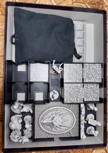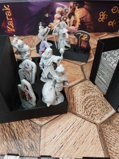 Przedmiotem sprzedaży jest insert pasujacy do gry: Karak, który pomieści również dodatek: Regent, oraz minidodatek zawierający nowych bohaterów. A także figurki do gry.