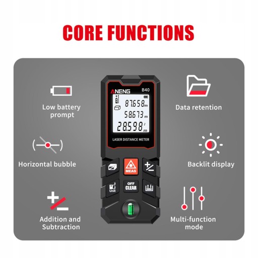 Laserowy miernik odległości Cyfrowy zasięg lasera Odległość Powierzchnia Objętość 40m