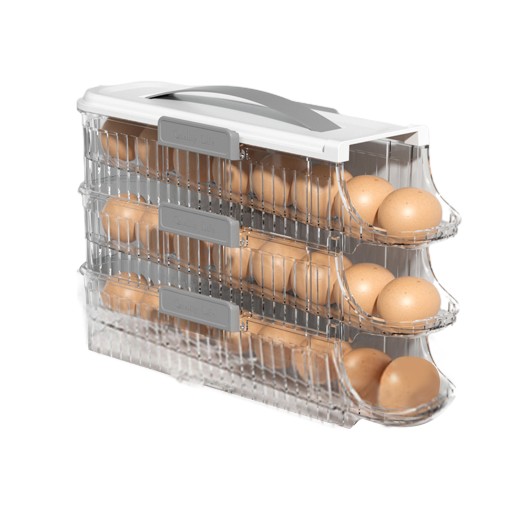 - 3. Tilting Design: The refrigerator egg container adopts a tilting design. When the eggs are taken out, the remaining eggs will automatically roll off, no need to open the lid the next time you take out the eggs.