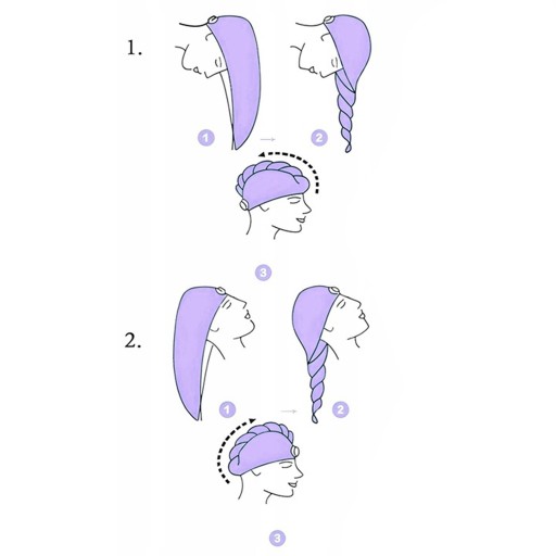 - Skręcanie: Skręć węższy koniec turbanu razem z włosami i unieś go do góry.