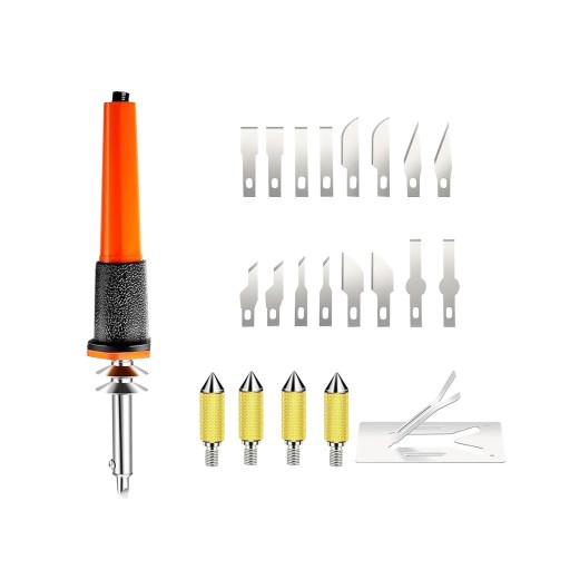 [Kompleksowy pakiet]: Pakiet zawiera 1 elektryczny uchwyt do cięcia na gorąco, 4 tuleje uchwytu, 16 i 1 stojak, zapewniający wszystko, czego potrzebujesz do zadań związanych z cięciem.