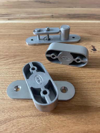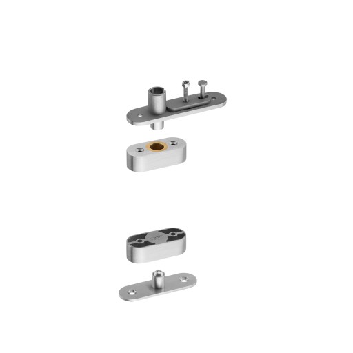 Zawias JNF do drzwi drewnianych z mocowaniem podłogowym. Łożysko z litego mosiądzu zapewnia długą żywotność.