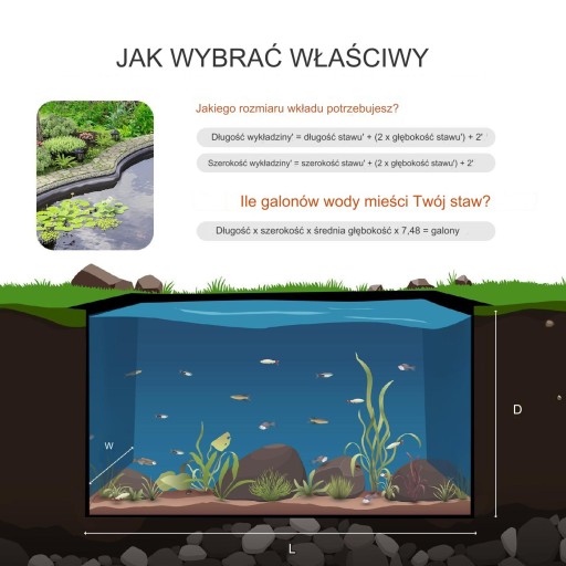 Łatwo dopasowuje się do niemal każdego kształtu stawu. Ważne jest, aby wybrać folię nieco większą niż rozmiar stawu i odciąć nadmiar po montażu.