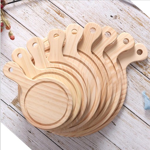 Okrągła drewniana deska do kuchni do pizzy talerz do chleba taca do serwowania z uchwytem 10 cali